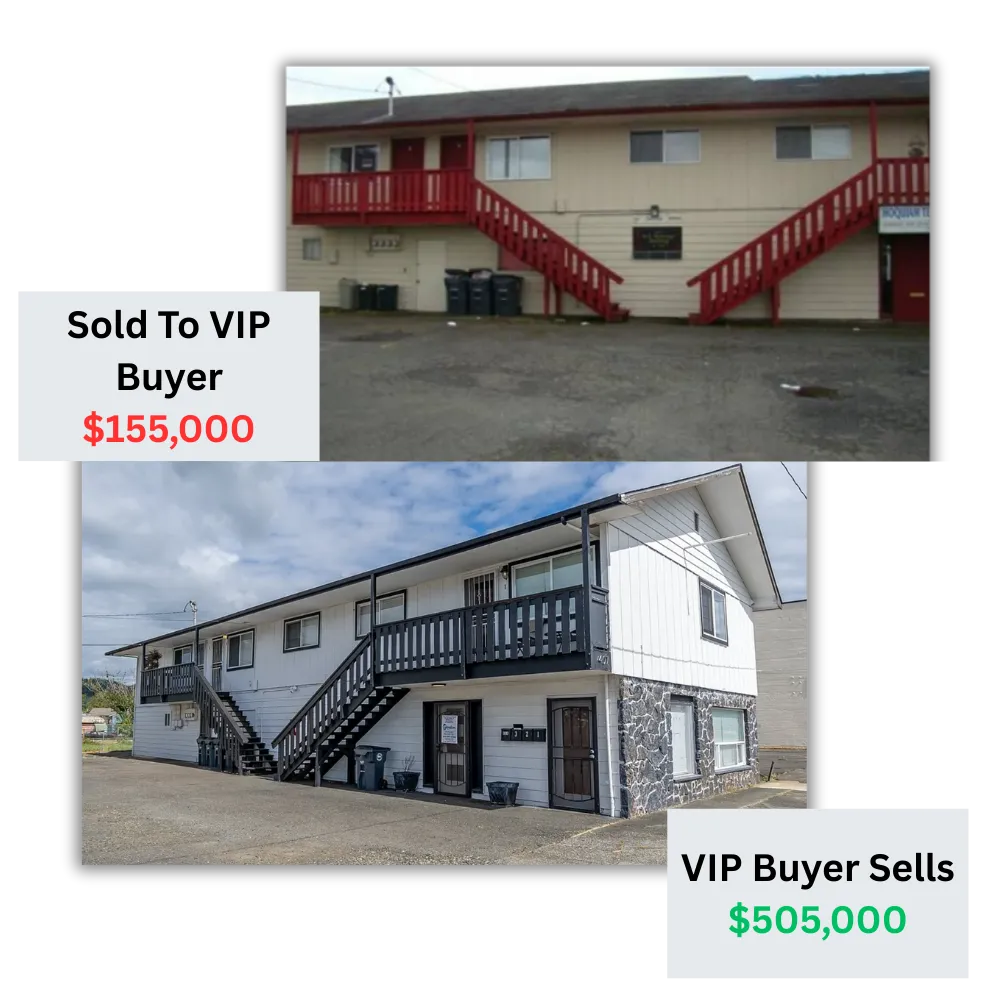• Less Competition: All our deals are completely off the market and are only shared with our VIP buyers which means more profit potential!